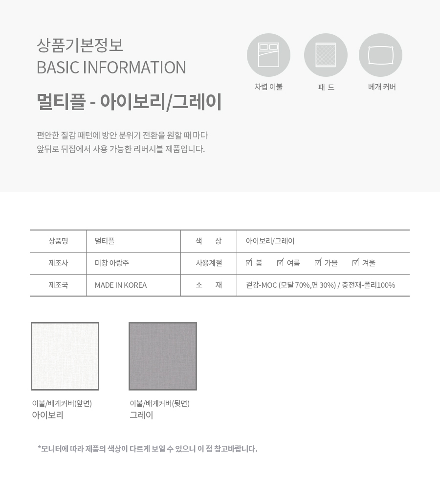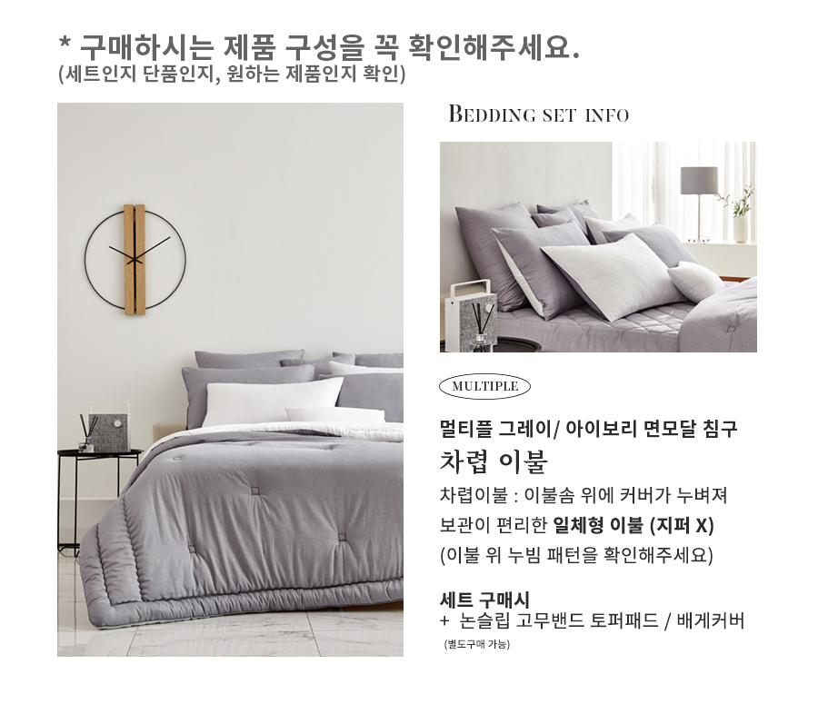 멀티플 아이보리,그레이 차렵패드세트 S / Q