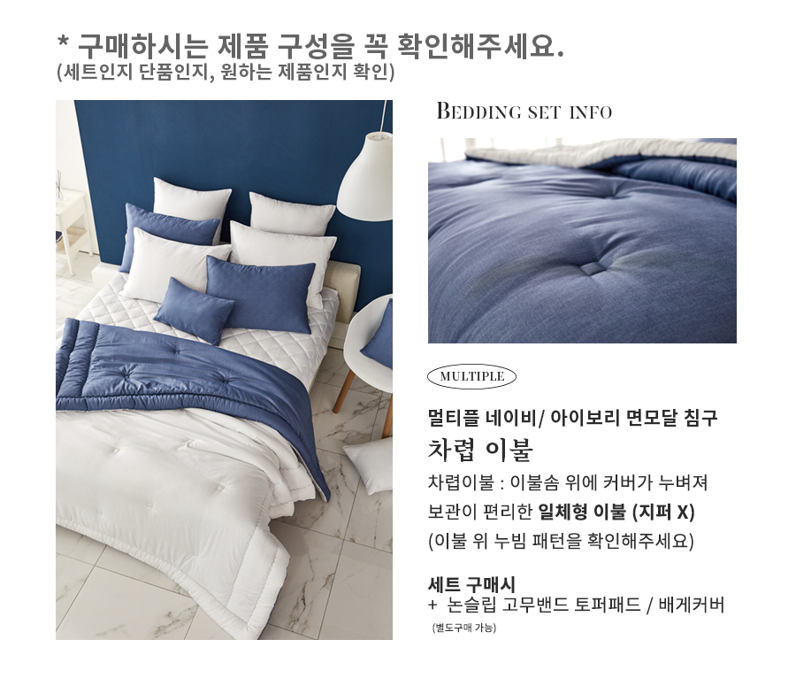 Q세트 차렵+패드+베개커버2장 / S세트 차렵+패드 배게커버1장 입니다.