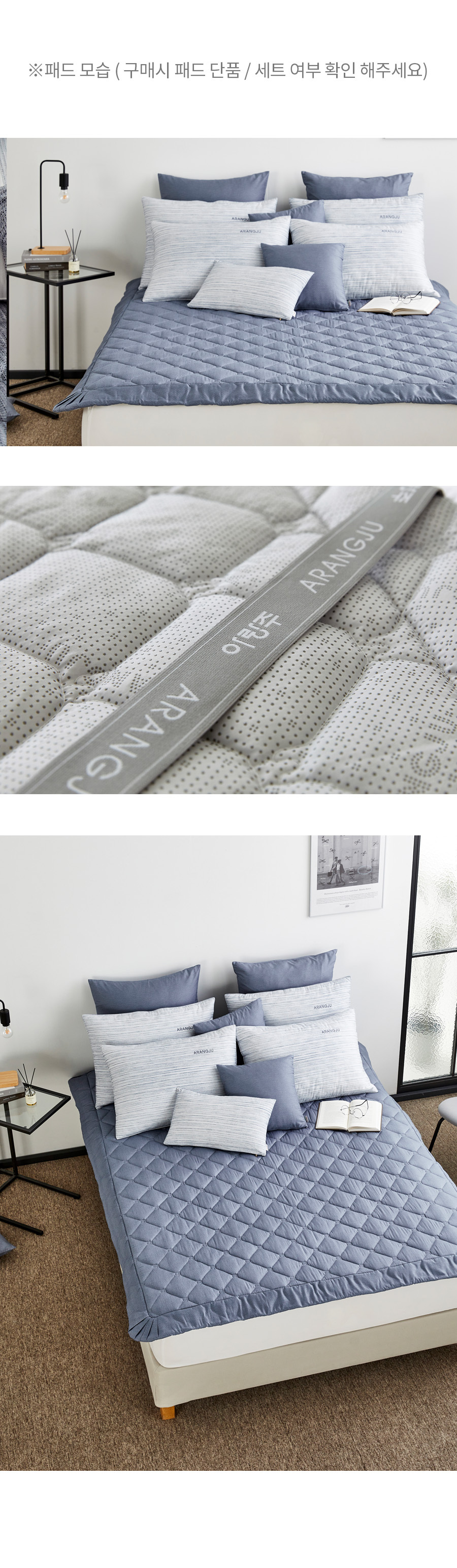 Q세트 차렵+패드+베개커버2장 / S세트 차렵+패드 배게커버1장 입니다.