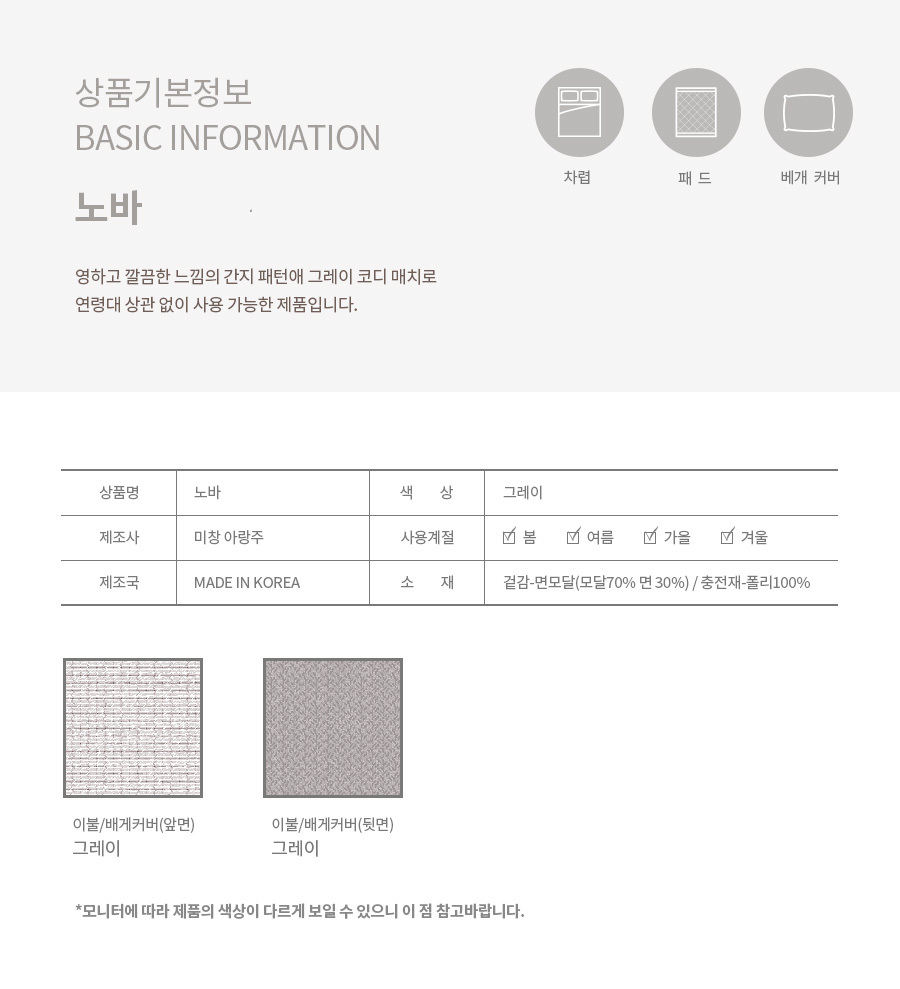 노바 차렵 , 패드 , 베개커버 단품