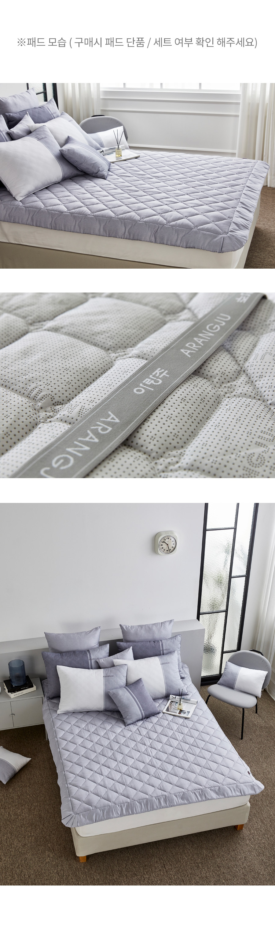 Q세트 차렵+패드+베개커버2장 / S세트 차렵+패드 배게커버1장 입니다.