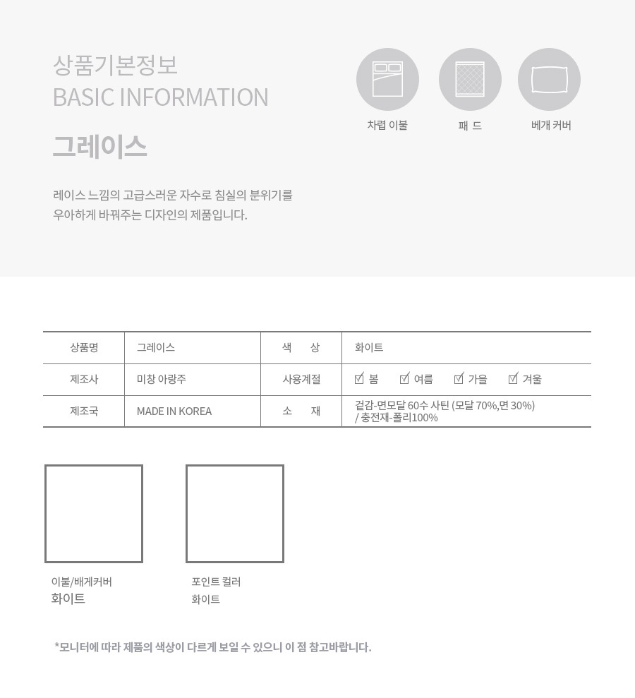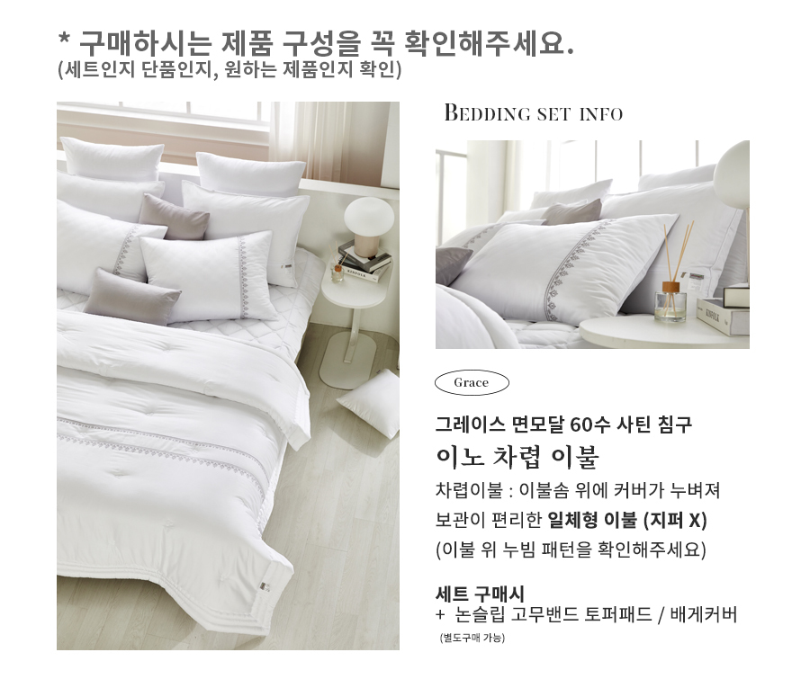 그레이스 차렵 , 패드 , 베개커버 단품