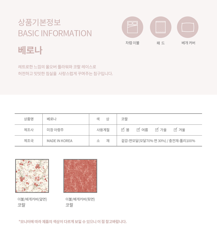 차렵 Q, S, 패드 K, SS 베개커버 50x70 단품입니다.